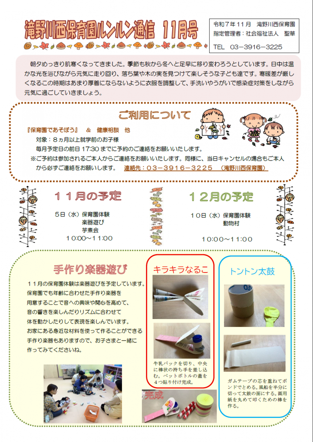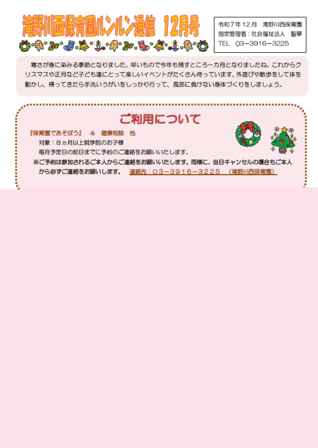 12月の保育体験は、園行事の動物村に参加する予定です。