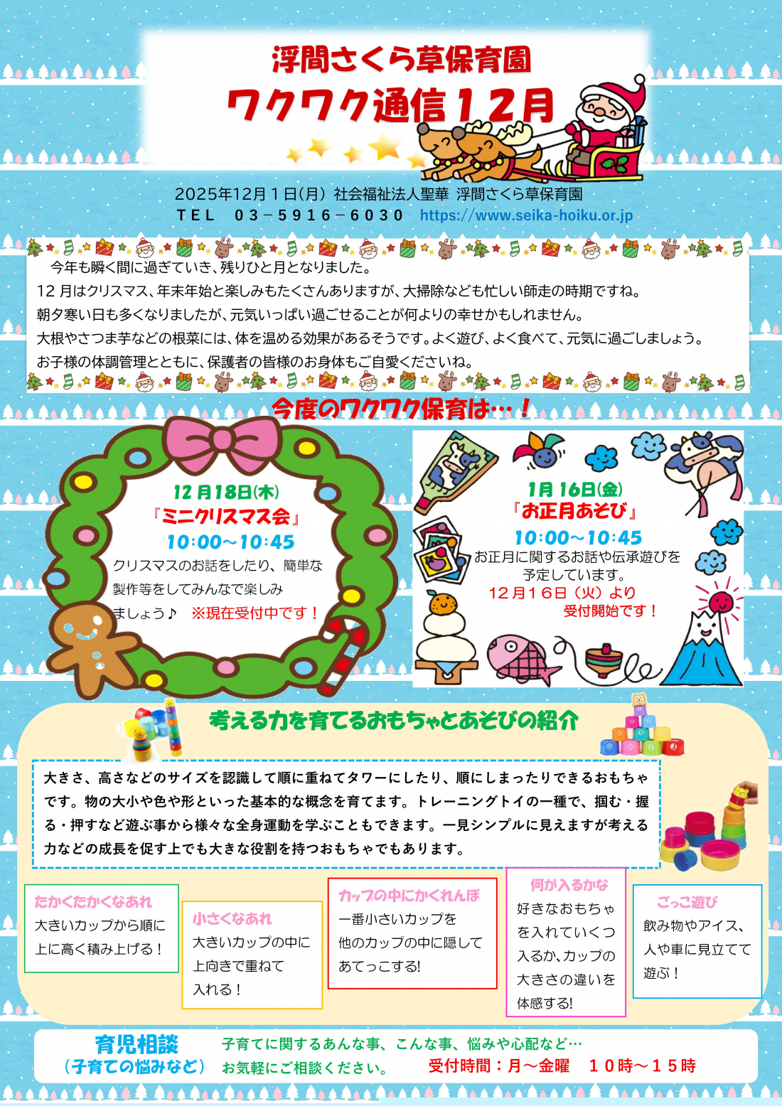 12月18日(金)わくわく保育『ミニクリスマス会』は現在受付中です!