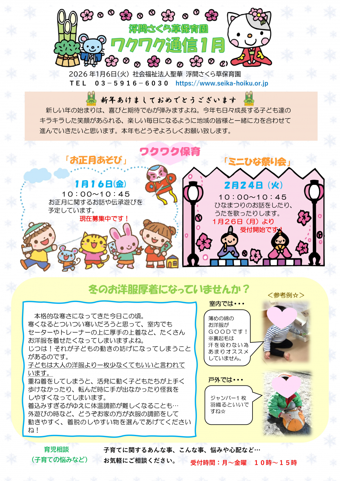 2月24日(火)わくわく保育『ミニひなまつり会』1月23日(金)より受付開始です!