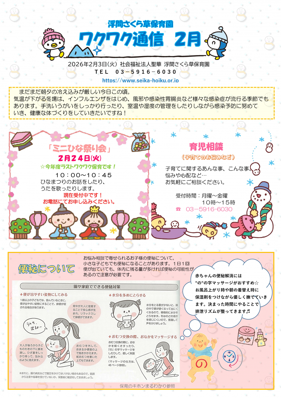 2月24日(火)わくわく保育『ミニひなまつり会』現在受付中です!