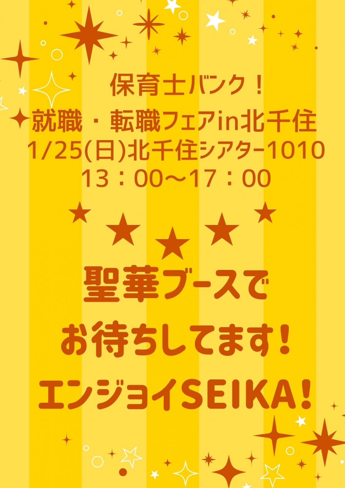 詳細は『保育園で働こう!』就職・転職フェアin新宿をご確認ください。