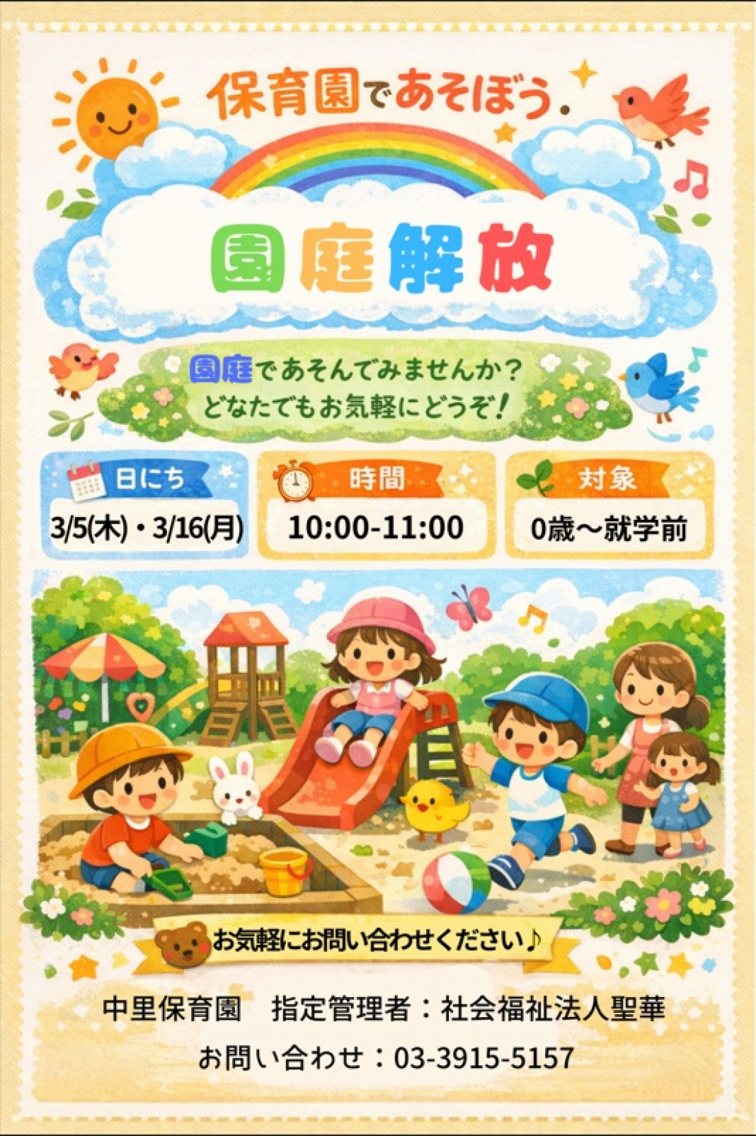 中里保育園の子育て支援スケジュールです。予約制です。お問い合わせお待ちしています!